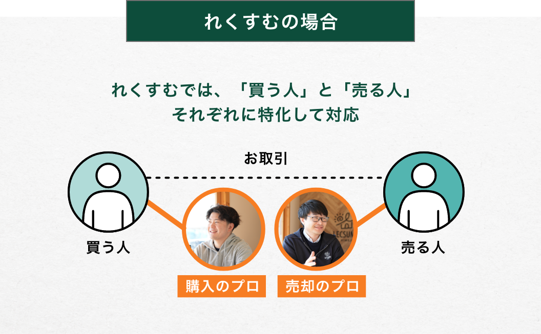 「売却のプロ」と「購入のプロ」を分けた専門体制を採用しています。